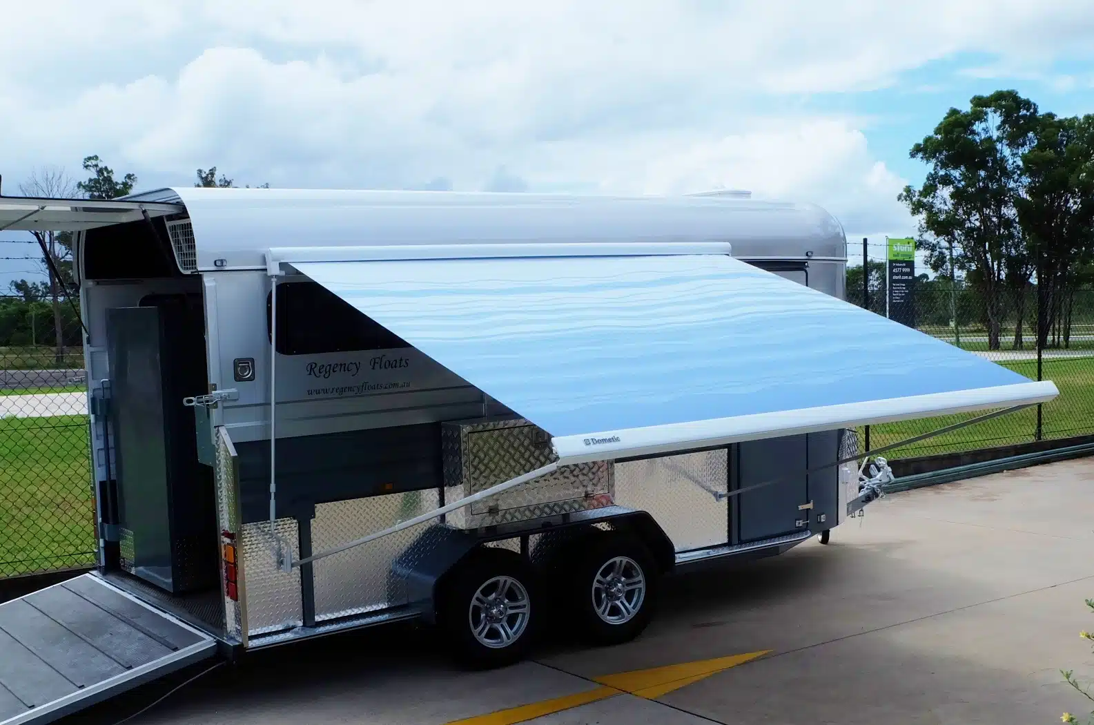 HomeAccessoriesAwnings Awnings$1,999.00 4m awning $1999 3.5m awning $1,899 2.5m awning $1,799 Ideal for campers, wind out with legs to ground or attached to float Enquire On Float Upgrade Please enable JavaScript in your browser to complete this form.Please enable JavaScript in your browser to complete this form.Name *Email * Number Name Email Phone Number *Submit Category: Accessories Product ID: 22496 Related products Out of stock Add to WishlistRemove from Wishlist Add to Wishlist Rubber Curtain $225.00 Read more Out of stock Add to WishlistRemove from Wishlist Add to Wishlist Feed bin and bracket $199.00 Read more Add to WishlistRemove from Wishlist Add to Wishlist Silver Round Front drawbar box $480.00 Buy now