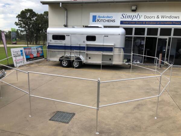 Set of 6 portable Horse Yard Panels, lightweight and easily set up. Stored on side of your float whilst traveling.