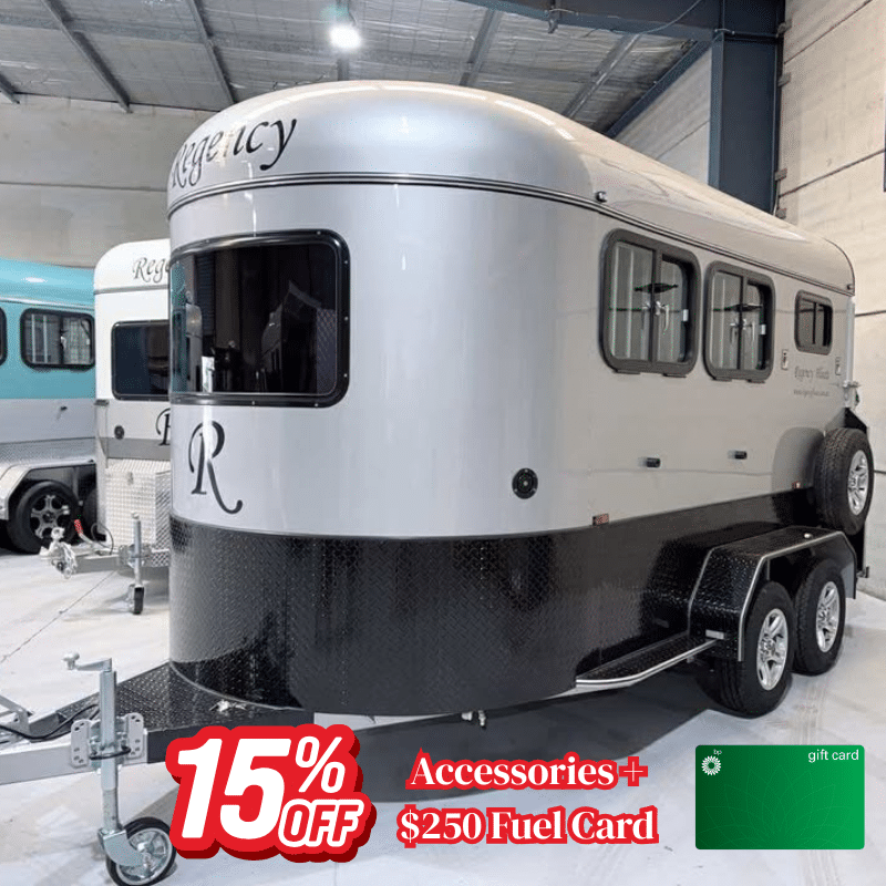 HomeIn-Stock SpecialsRF576 | MAY STOCK | Round 2 HAL Deluxe 2500mm x 750mm bays RF576 | MAY STOCK | Round 2 HAL Deluxe 2500mm x 750mm bays$30,995.00 15% off added accessories plus $250 Fuel Card if purchased prior to April 30 Standard Inclusions 2 x pop up vents with fly screen 3x sliding windows with fly screen 2 x drop down windows Fully adjustable and removable padded dividers Fully removable swing out tack box Removable rug rack Fully lined roof Fully removable stallion bar 1m high rubber along walls Anti slip rubber flooring 10 year flooring system warranty 4 year body warranty Spare wheel Aluminium Flooring with extra steel beams for additional support – Rot free Break away system Gas assisted ramp and storm door Bonus Inclusions Front Kitchenette with overhead storage 240v/12v power supply 65L water tank, sink, pump and external tap Caravan fly screen door 240v Fridge/Freezer and Microwave Spec sheet See Delivery Options View Other Accessories View Warranty Enquire On Float Please enable JavaScript in your browser to complete this form.Please enable JavaScript in your browser to complete this form.Name *Email * Phone Name Phone Number *Submit RF576 | MAY STOCK | Round 2 HAL Deluxe 2500mm x 750mm bays quantity Buy now Add to WishlistRemove from Wishlist Add to Wishlist Category: In-Stock Specials Product ID: 23971 Description Description Dimensions Body Dimension (L x W x Hmm) : 4120 × 1980 × 2230 mm Inner Dimension (L x W x Hmm) : 4070 × 1930 × 2225 mm Overall Dimension (L x W x Hmm) : 5480 × 2490 × 2600 mm Bay Size 2500mm x 750mm TARE 1650KGS Related products Add to WishlistRemove from Wishlist Add to Wishlist RF516 | IN STOCK | Round 2 HSL Standard Warmblood 2200mm x 990mm bays $26,000.00 Buy now Add to WishlistRemove from Wishlist Add to Wishlist RF576 | MAY STOCK | Round 2 HAL Standard Warmblood 2600mm x 720mm bays $29,444.00 Buy now Add to WishlistRemove from Wishlist Add to Wishlist RF574| MAY STOCK | Square 2 HAL Thoroughbred 2500mm x 750mm bays $24,495.00 Buy now