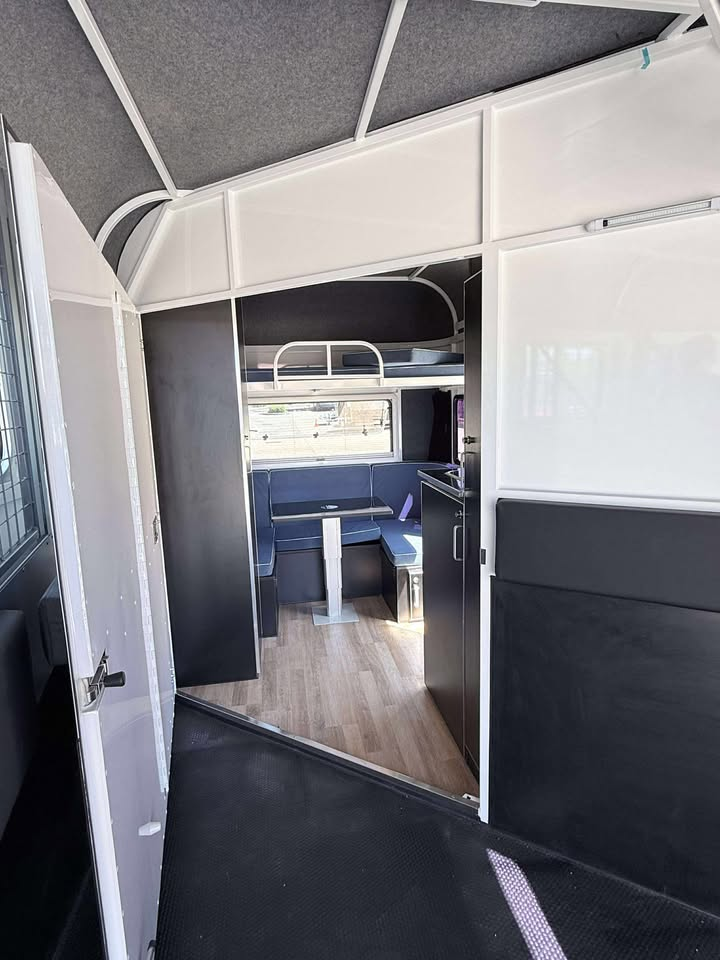 HomeIn-Stock SpecialsSquare 3 HAL Full Camper RF497 Square 3 HAL Full Camper RF497$46,693.00 IN STOCK – FREE DELIVERY TO EDEN PARK VICTORIA Standard Inclusions Swing out tack box with 3 saddle racks and 3 bridle hooks Rug racks with gas strut assisted doors 2 x pop up vents 3 x drop down windows with fly screen 3 x sliding windows with fly screen Fully adjustable and removable padded dividers Fully lined roof Fully removable stallion bars 1m high rubber along walls Anti slip rubber flooring 10 year flooring system warranty 4 year body warranty Spare wheel Aluminium Flooring with extra steel beams for additional support – Rot free Break away system Gas assisted ramp and storm door Bonus Inclusions Single bunk beds 1900mm x 1000mm top and bottom Kitchenette with 240v Fridge and Microwave Extra large hanging wardrobe 65L water tank, pump and sink 240v/12v power supply 240v/12v black box voltech invertor 4 x internal 12v lights Caravan door with fly screen Caravan window with fly screen and black out blind 4 x sliding windows in living with fly screen and curtains 2 x external LED lights, door side. Fly screen on vents Roll back dividing wall 4m awning Reverse Cycle Aircon Front tack box Side tack box Front access door Aluminium Yards Covered sink Spec sheet See Delivery Options View Other Accessories View Warranty Enquire On Float Please enable JavaScript in your browser to complete this form.Please enable JavaScript in your browser to complete this form.Name *Phone Number * Number Email Email *Submit Square 3 HAL Full Camper RF497 quantity Buy now Add to WishlistRemove from Wishlist Add to Wishlist Category: In-Stock Specials Product ID: 22677 Description Description Dimensions Body Dimension (L x W x Hmm) : 6,150 x 1980 x 2300 Inner Dimension (L x W x Hmm) : 5200 x 1930 x 2295 Overall Dimension (L x W x Hmm):6700 x 2490 x 2600 Bay Size 2400mm x 720mm TARE 2250KGS Related products -2% Add to WishlistRemove from Wishlist Add to Wishlist Square 2 HAL Full Camper Warmblood RF522 $51,015.00 Original price was: $51,015.00.$49,940.00Current price is: $49,940.00. Buy now Add to WishlistRemove from Wishlist Add to Wishlist Square 2 HAL Full Camper Warmblood RF525 $50,050.00 Buy now Add to WishlistRemove from Wishlist Add to Wishlist Round 2 HSL Standard Warmblood RF516 $26,094.00 Buy now