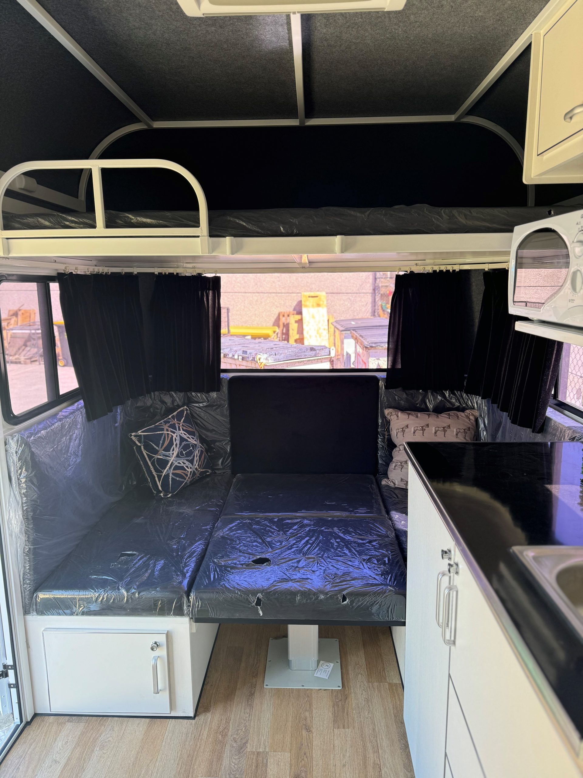 Experience the perfect blend of comfort and practicality with the Regency Square Camper—your ultimate home away from home. Thoughtfully designed with separated living areas, double bunk beds, a full kitchenette, and high-quality appliances, this camper offers everything you need for a relaxing and functional getaway.